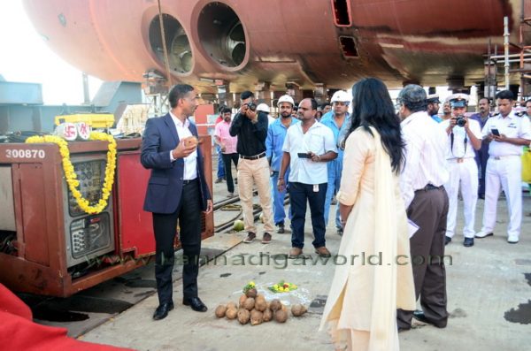 ಕರಾವಳಿ ತಟ ರಕ್ಷಣಾ ಪಡೆಯ ಅಧಿಕಾರಿ ಪವನ್ ಕೋಯರ್ ಅವರ ಪತ್ನಿ ಶಿಲ್ಪಾ ಕೋಯರ್ ನೂತನ ಗಸ್ತು ನೌಕೆಗೆ ತೆಂಗಿನ ಕಾಯಿ ಒಡೆಯುವ ಮೂಲಕ ಉದ್ಘಾಟನೆ ನೆರವೇರಿಸಿದರು. ಬಳಿಕ ಬೃಹತ್ತಾದ ಕ್ರೇನ್ ಸಹಾಯದಿಂದ ನೌಕೆ ವಿ- 410ನ್ನು ನೀರಿಗಿಳಿಸಲಾಯಿತು.