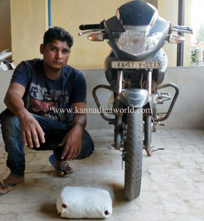 ಕಾಸರಗೋಡು ಉಪ್ಪಳಗೇಟ್ ಶಾರದಾನಗರ ಮುಸೋಡಿಯ ಅರುಣ್ ಕುಮಾರ್ (21) ಬಂಧಿತ ಆರೋಪಿ. ಆರೋಪಿಯಿಂದ 20 ಸಾವಿರ ರೂ. ಮೌಲ್ಯದ 1.100 ಕಿ.ಗ್ರಾಂ ಗಾಂಜಾ, 65 ಸಾವಿರ ರೂ. ಮೌಲ್ಯದ ಬೈಕ್, 1 ಸಾವಿರ ರೂ. ಮೌಲ್ಯದ ಮೊಬೈಲ್ ಸಹಿತ 86 ಸಾವಿರ ರೂ. ಮೌಲ್ಯದ ಸೊತ್ತನ್ನು ಪೊಲೀಸರು ವಶಪಡಿಸಿಕೊಂಡಿದ್ದಾರೆ.