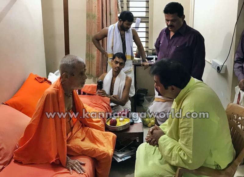 ಉಡುಪಿ: ಮೀನುಗಾರಿಕೆ, ಯುವಸಬಲೀಕರಣ, ಕ್ರೀಡೆ ಮತ್ತು ಜಿಲ್ಲಾ ಉಸ್ತುವಾರಿ ಸಚಿವ ಪ್ರಮೋದ್ ಮಧ್ವರಾಜ್ ಅವರು ಪೇಜಾವರ ಸ್ವಾಮೀಜಿಗಳನ್ನು ಭೇಟಿ ಮಾಡಿ, ಅವರ ಆರೋಗ್ಯವನ್ನು ವಿಚಾರಿಸಿದರು.