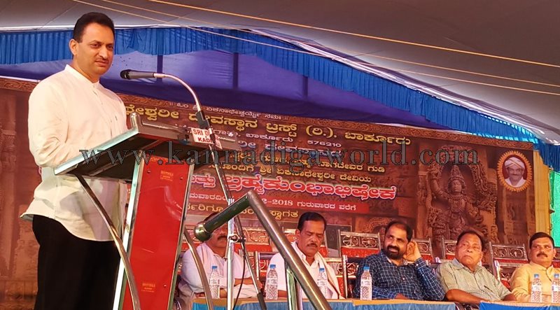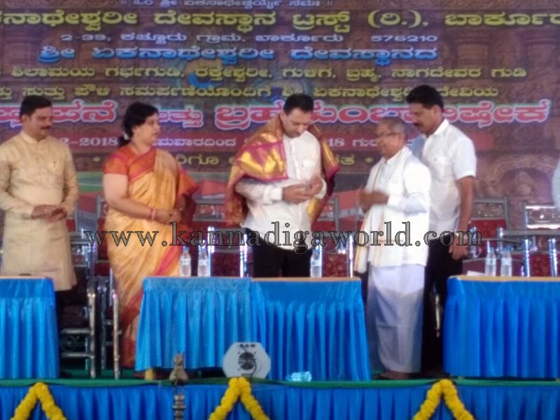 ಅವರು ಮಂಗಳವಾರ ಬಾರಕೂರು ಶ್ರೀ ಏಕನಾಥೇಶ್ವರೀ ದೇವಸ್ಥಾನದಲ್ಲಿ ಶ್ರೀ ದೇವಿಯ ಪ್ರತಿಷ್ಠಾಪನೆ ಮತ್ತು ಬ್ರಹ್ಮಕುಂಭಾಭಿಷೇಕದ ಪ್ರಯುಕ್ತ ಧಾರ್ಮಿಕ ಸಭಾ ಕಾರ್ಯಕ್ರಮದಲ್ಲಿ ಮಾತನಾಡಿದರು.