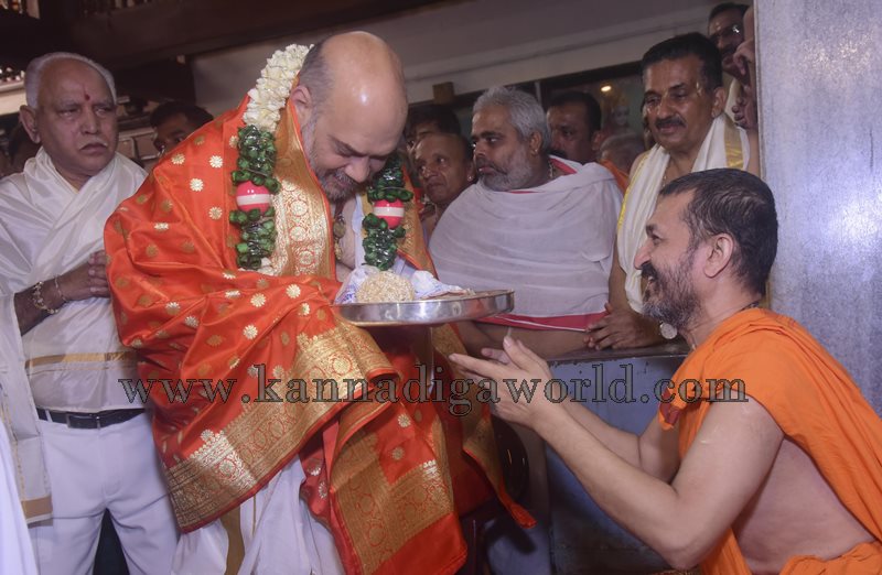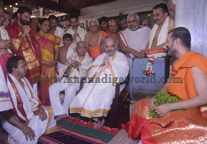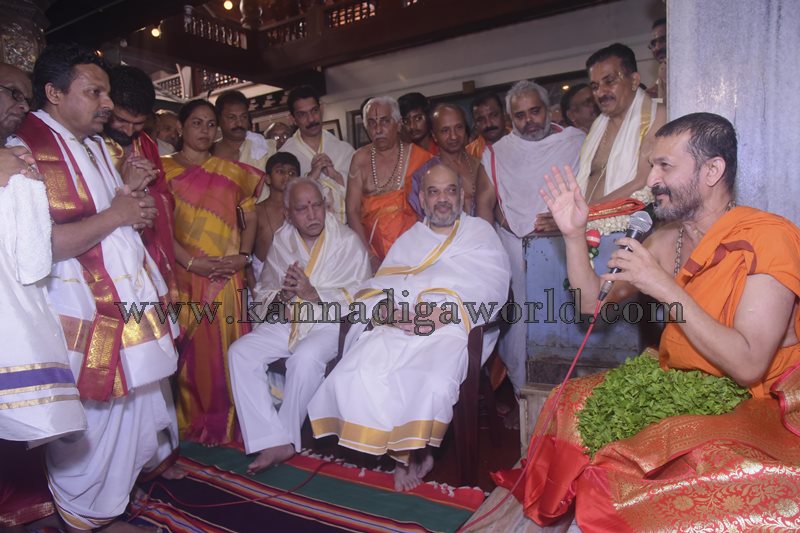 ಇದೇ ಸಂಧರ್ಭದಲ್ಲಿ ಪಲಿಮಾರು ಶ್ರೀಗಳು ಕೃಷ್ಣ ಮಠದ ಗೋಪುರದ ಮಾದರಿಯನ್ನು ನೆನಪಿನ ಕಾಣಿಕೆಯಾಗಿ ನೀಡಿ ಆಶಿರ್ವಾದಿಸಿದರು. ಈ ಸಂಧರ್ಭದಲ್ಲಿ ಮಾತನಾಡಿದ ಷಾ ನಾನು ಶ್ರಿಕೃಷ್ಣನ ದರುಷನ ಹಾಗೂ ಶ್ರೀ ಗಳ ಆಶೀರ್ವಾದ ಪಡೆಯಲು ಬಂದಿದ್ದೇನೆ.ನವಗ್ರಹ ಕಿಂಡಿಮೂಲಕ ಕೃಷ್ಣನ ದರುಶನ ಪಡೆದದ್ದು ನನ್ನ ಸೌಭಾಗ್ಯ ಎಂದರು.