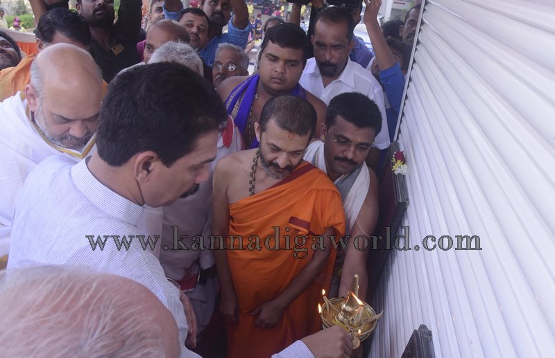 ಉಡುಪಿ: ಕರಾವಳಿ ಪ್ರವಾಸದಲ್ಲಿರುವ ಬಿಜೆಪಿ ರಾಷ್ಟ್ರಧ್ಯಕ್ಷ ಅಮಿತ್ ಷಾ ಇಂದು ಉಡುಪಿಯ ಶ್ರೀ ಕೃಷ್ಣ ಮಠಕ್ಕೆ ಭೇಟಿ ನೀಡಿ ನವಗ್ರಹ ಕಿಂಡಿ ಮೂಲಕ ಕೃಷ್ಣನ ದರುಶನ ಪಡೆದರು. ಮುಂಜಾನೆ ಅಗಮಿಸಿ ಷಾ ರನ್ನು ಪರ್ಯಾಯ ಶ್ರೀ ಪಾದರು ಬರಮಾಡಿಕೊಂಡರು. ಕೃಷ್ಣನ ದರುಶನ ಪಡೆದ ಅಮಿತ್ ಷಾ ಶ್ರೀಗಳಿಗೆ ತುಳಸಿ ಮಾಲೆ ಹಾಗೂ ಶಾಲು ಹೊದಿಸಿ ಗೌರವಿಸಿದರು.