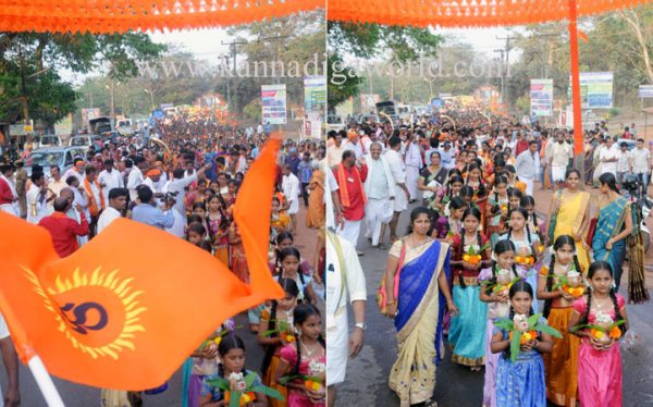 ಚೆಂಡೆ, ಭಜನೆ ನಿನಾದ : ಮೆರವಣಿಗೆಯಲ್ಲಿ ಚೆಂಡೆ ನಾದ, ಭಜನೆ ನಿನಾದ ಹಾಗೂ ಭಕ್ತ ಸಮುದಾಯದ ಜೈಕಾರ ಮುಗಿಲು ಮುಟ್ಟುವಂತಿತ್ತು. ಎಲ್ಲೆಡೆ ಭಗವಾಧ್ವಜ ರಾರಾಜಿಸುತ್ತಿತ್ತು. ಕೇಸರಿ ಸೀರೆ ಉಟ್ಟ ನೂರಾರು ಮಹಿಳೆಯರು ಭಜನೆಯೊಂದಿಗೆ ಮುಂದೆ ಸಾಗಿದರೆ ಬೊಂಬೆ ಕುಣಿತ , ತಾಸೆ, ಡೋಲು, ಕೊಂಬು ವಾದ್ಯಗಳ ನಿನಾದ ಭಕ್ತರನ್ನು ಬಾವ ಪರವಶರಾಗುವಂತೆ ಮಾಡಿತು.