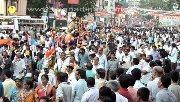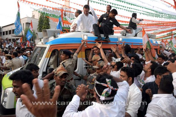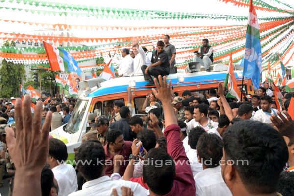 ಸಂಜೆ ಸುರತ್ಕಲ್ ನಿಂದ ಆಗಮಿಸಿದ ರಾಹುಲ್ ಗಾಂಧಿ ಅವರು ಸರ್ಕ್ಯೂಟ್ ಹೌಸ್ ನಲ್ಲಿ ಕೆಲವು ನಿಮಿಷ ಕಾಲ ವಿಶ್ರಾಂತಿ ಪಡೆದು ನಂತರ ನಗರದ ಅಂಬೇಡ್ಕರ್ ವೃತ್ತ (ಜ್ಯೋತಿ ವೃತ್ತ) ದಿಂದ ನೆಹರೂ ಮೈದಾನದವರೆಗೆ ತೆರೆದ ವಾಹನದಲ್ಲಿ ರೋಡ್ ಶೋ ನಡೆಸಿದರು.