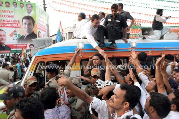 ಮಂಗಳೂರು,ಮಾರ್ಚ್.20 : ಚುನಾವಣೆಯ ಹಿನ್ನೆಲೆಯಲ್ಲಿ ಪಕ್ಷ ಸಂಘಟನೆ ದೃಷ್ಟಿಯಿಂದ ಕರಾವಳಿ ಮತ್ತು ಮಲೆನಾಡು ಜಿಲ್ಲೆಗಳಿಗೆ ಎಐಸಿಸಿ ಅಧ್ಯಕ್ಷರಾದ ಬಳಿಕ ಇದೇ ಮೊದಲ ಬಾರಿಗೆ ಆಗಮಿಸಿದ ರಾಹುಲ್ ಗಾಂಧಿ ಅವರು ಉಡುಪಿ ಹಾಗೂ ದ.ಕ.ಜಿಲ್ಲೆಗಳಲ್ಲಿ ‘ಜನಾಶೀರ್ವಾದ ಯಾತ್ರೆ’ಯಲ್ಲಿ ಪಾಲ್ಗೊಂಡ ಬಳಿಕ ಮಂಗಳೂರಿನಲ್ಲಿ ರೋಡ್ ಶೋ ನಡೆಸಿದರು.