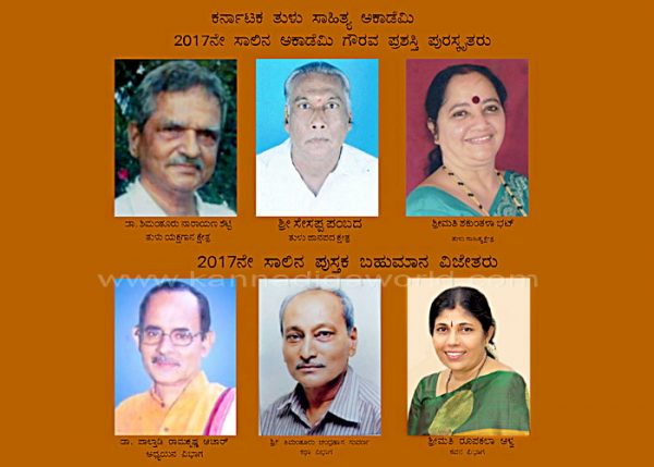 ಮಂಗಳೂರು, ಮಾರ್ಚ್ 23: ಕರ್ನಾಟಕ ತುಳು ಸಾಹಿತ್ಯ ಅಕಾಡೆಮಿಯ 2017ನೇ ಸಾಲಿನ ಗೌರವ ಪ್ರಶಸ್ತಿಗೆ ವಿವಿಧ ಕ್ಷೇತ್ರಗಳಲ್ಲಿ ಗಣನೀಯ ಸೇವೆ ಸಲ್ಲಿಸಿದ 3 ಮಂದಿ ಹಿರಿಯರನ್ನು ಆಯ್ಕೆ ಮಾಡಲಾಗಿದೆ.