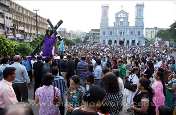 ನಗರದ ಮಿಲಾಗ್ರಿಸ್ ಚರ್ಚ್ ಆವರಣದಲ್ಲಿ ಇಂದು ಬೆಳಗ್ಗೆ ‘ಶಿಲುಬೆಯ ಹಾದಿ’ (ವೇ ಆ ದಿ ಕ್ರಾಸ್) ಆಚರಣೆಯನ್ನು ನಡೆಸುವ ಮೂಲಕ ಯೇಸು ಕ್ರಿಸ್ತರು ಅನುಭವಿಸಿದ ಕಷ್ಟ- ಸಂಕಷ್ಟಗಳನ್ನು ಕ್ರೈಸ್ತರು ಸ್ಮರಿಸಿದರು. ಕೆಲವು ಚರ್ಚ್ಗಳಲ್ಲಿ ಇಂದು ಅಪರಾಹ್ನದ ಬಳಿಕ ‘ಶಿಲುಬೆಯ ಹಾದಿ’ ಆಚರಣೆ ನೆರವೇರಲಿದೆ.