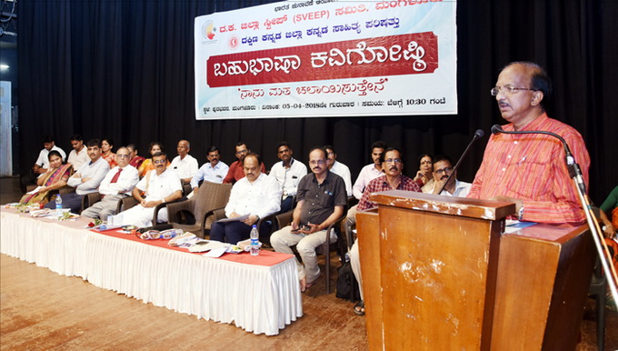 ಮಂಗಳೂರು, ಎಪ್ರಿಲ್.6: ದ.ಕ ಜಿಲ್ಲಾ ಸ್ವೀಪ್ ಹಾಗೂ ಕನ್ನಡ ಸಾಹಿತ್ಯ ಪರಿಷತ್ ವತಿಯಿಂದ ನಗರದ ಪುರಭವನದಲ್ಲಿ ನಾನು ಮತ ಚಲಾಯಿಸುತ್ತೇನೆ ಎಂಬ ವಿಷಯದ ಬಗ್ಗೆ ಬಹುಭಾಷಾ ಕವಿಗೋಷ್ಠಿ ನಡೆಯಿತು.