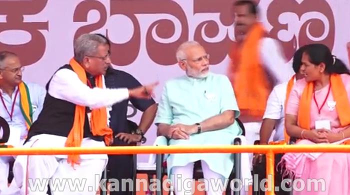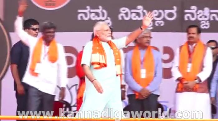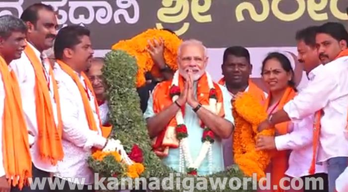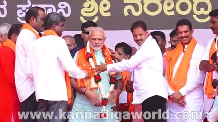 ಚುನಾವಣೆ ಹತ್ತಿರ ಬರುತ್ತಿದೆ, ನೀವೆಲ್ಲರೂ ಮತಗಟ್ಟೆಯವರೆಗೆ ಜನರನ್ನು ಕೊಂಡೊಯ್ಯಬೇಕು, ಮತಗಟ್ಟೆಗೆ ತೆರಳಿದ ಜನರು ಅವರಾಗಿಯೇ ಬಿಜೆಪಿಗೆ ಮತಹಾಕುವಂತಾಗಬೇಕು. ಯಡಿಯೂರಪ್ಪ ಅಧಿಕಾರದಲ್ಲಿ ಕರ್ನಾಟಕದಲ್ಲಿ ನೂತನ ಸರಕಾರ ರಚಿಸಲಾಗುವುದು. “ಸ್ವಚ್ಛ ಸುಂದರ ಕರ್ನಾಟಕ ನಿರ್ಮಿಸೋಣ”, “ಬನ್ನಿ ಎಲ್ಲರೂ ಕೈ ಜೋಡಿಸೋಣ”, “ಸರಕಾರ ಬದಲಿಸಿ, ಬಿಜೆಪಿ ಗೆಲ್ಲಿಸಿ” ಎಂದು ಕನ್ನಡದಲ್ಲಿ ಪ್ರಧಾನಿ ಮೋದಿ ಹೇಳಿದರು.