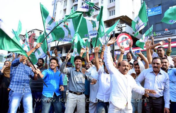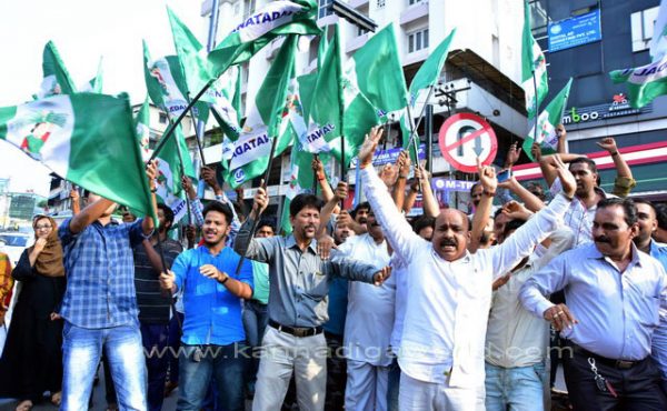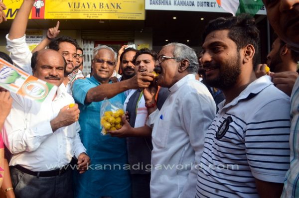 ಮಂಗಳೂರು,ಮೇ.19: ಬಿಜೆಪಿ ರಾಜ್ಯಾಧ್ಯಕ್ಷ ಬಿ.ಎಸ್ ಯಡಿಯೂರಪ್ಪ ಅವರು ಶನಿವಾರ ಹೊಸ ಸರಕಾರದ ವಿಶ್ವಾಸ ಮತ ಯಾಚನೆ ಸಂದರ್ಭ ರಾಜೀನಾಮೆ ನೀಡಿದ ಹಿನ್ನೆಲೆಯಲ್ಲಿ ದ.ಕ ಜಿಲ್ಲಾ ಕಾಂಗ್ರೆಸ್ ಹಾಗೂ ದ.ಕ.ಜಿಲ್ಲಾ ಜೆಡಿಎಸ್ ಕಾರ್ಯಾಕರ್ತರು ಕಾಂಗ್ರೆಸ್ ಕಚೇರಿ ಮುಂಭಾಗದಲ್ಲಿ ಸಂಭ್ರಮಾಚರಣೆ ನಡೆಸಿದರು.