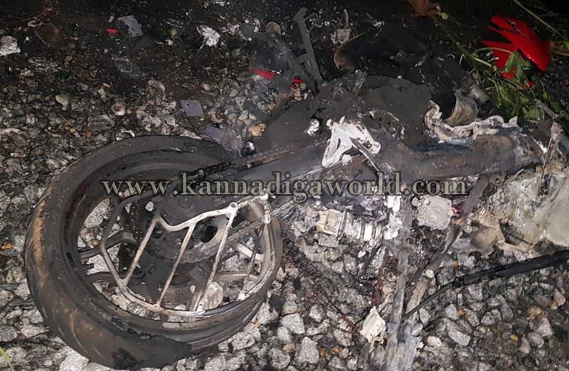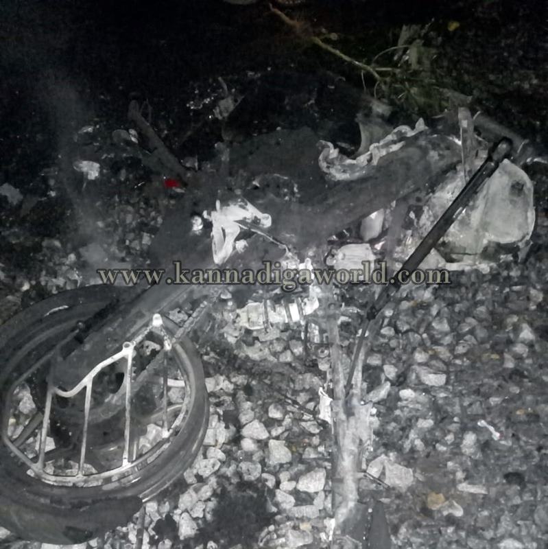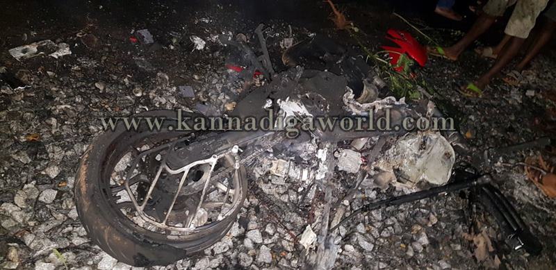 ಅಪಘಾತದಲ್ಲಿ ಬೈಕಿಗೆ ಬೆಂಕಿ….