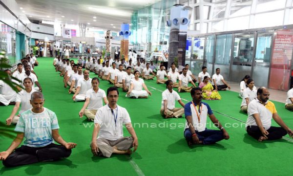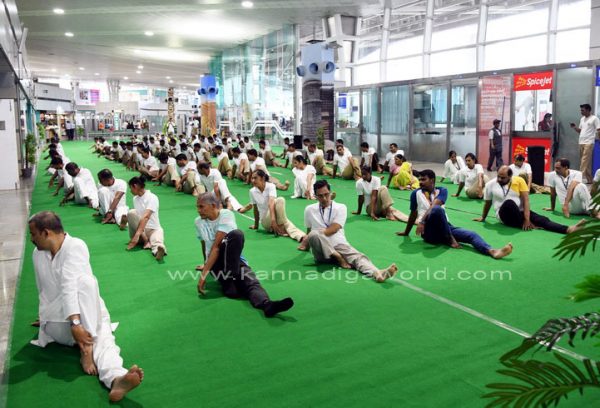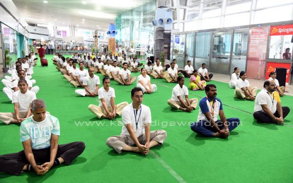 ಮಂಗಳೂರು ಅಂತರರಾಷ್ಟ್ರೀಯ ವಿಮಾನ ನಿಲ್ದಾಣದಲ್ಲಿ ಯೋಗ ದಿನಾಚರಣೆ