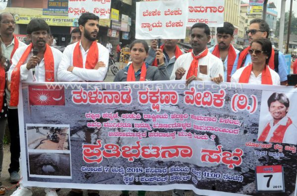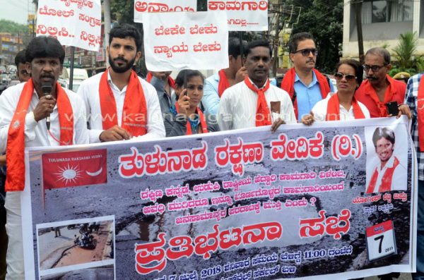 ರಾ.ಹೆ.66ರ ತೊಕ್ಕೊಟ್ಟು ಮತ್ತು ಪಂಪ್‌ವೆಲ್ ಫ್ಲೈಓವರ್ ಕಾಮಗಾರಿ ವಿಳಂಬ ಹಾಗೂ ಅಕ್ರಮ ಟೋಲ್ ಸಂಗ್ರಹದ ವಿರುದ್ಧ ತುಳುನಾಡ ರಕ್ಷಣಾ ವೇದಿಕೆಯ ವತಿಯಿಂದ ಶನಿವಾರ ನಗರದ ಪಂಪ್‌ವೆಲ್ ಸರ್ಕಲ್ ಬಳಿ ನಡೆದ ಪ್ರತಿಭಟನಾ ಸನ್ಹೆಯನ್ನುದ್ದೇಶಿಸಿ ಅವರು ಮಾತನಾಡಿದರು.