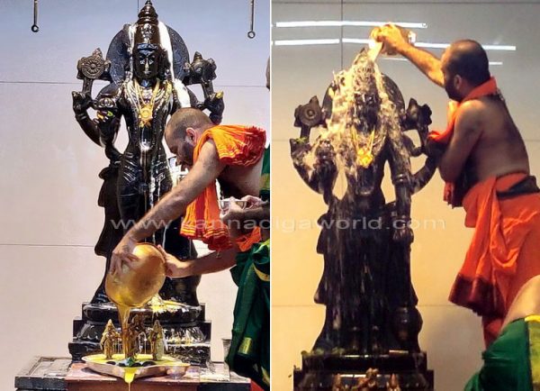 ಮಂಗಳೂರು : ಬೆಂಗಳೂರು ಶ್ರೀ ಕಾಶೀ ಮಠ ಸಂಸ್ಥಾನದ ಶಾಖಾಮಠದಲ್ಲಿ ಶ್ರೀಮದ್ ಸುಧೀಂದ್ರ ತೀರ್ಥ ಸ್ವಾಮೀಜಿಯವರ ದಿವ್ಯ ಹಸ್ತಗಳಿಂದ ಪ್ರತಿಷ್ಟಾಪಿಸಲ್ಪಟ್ಟ ಶ್ರೀಪಾರ್ಥಸಾರಥಿ ದೇವರ ಮೂಲ ಪ್ರತಿಷ್ಠಾ ವರ್ಧಂತಿ ಮಹೋತ್ಸವವು ಶ್ರೀಸಂಸ್ಥಾನದ ಪೀಠಾಧೀಶರಾದ ಶ್ರೀಮದ್ ಸಂಯಮೀಂದ್ರ ತೀರ್ಥ ಸ್ವಾಮೀಜಿಯವರ ಅಮೃತ ಹಸ್ತಗಳಿಂದ ನಿನ್ನೆ ಬೆಳಿಗ್ಗೆ ಶ್ರೀದೇವರಿಗೆ ಪಂಚಾಮೃತ, ಸಹಸ್ರ ಶಿಯಾಳಾಭೀಷೇಕ ಹಾಗೂ ಶತಕಲಶಾಭಿಷೇಕಗಳು ನೆರವೇರಿದವು.