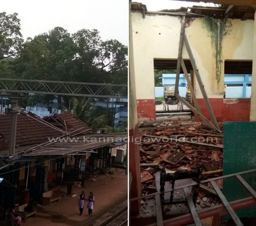 ಉಳ್ಳಾಲ, ಜುಲೈ. 13: ಕಳೆದ ಕೆಲವು ದಿನಗಳಿಂದ ಸುರಿಯುತ್ತಿರುವ ಭಾರೀ ಮಳೆಗೆ ಮಂಗಳೂರು ಹೊರವಲಯದ ಉಳ್ಳಾಲ ಹಳೇ ರೈಲ್ವೇ ನಿಲ್ದಾಣದ ಕ್ಯಾಂಟೀನ್ ಕಟ್ಟಡದ ಮೇಲ್ಛಾವಣಿ ಕುಸಿದಿದೆ.