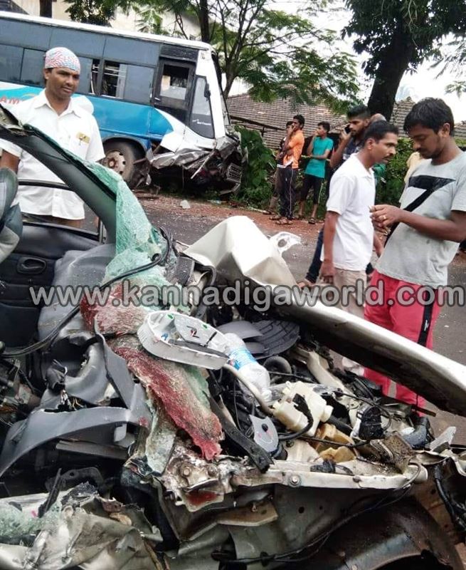 ಕುಂದಾಪುರದ ಅಂಪಾರಿನಲ್ಲಿ ಬಸ್-ಕಾರು ನಡುವೆ ಭೀಕರ ಅಪಘಾತ; ಇಬ್ಬರು ಗಂಭೀರ(Breaking)