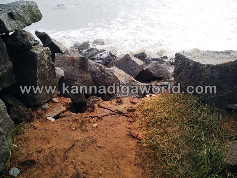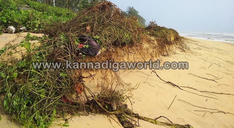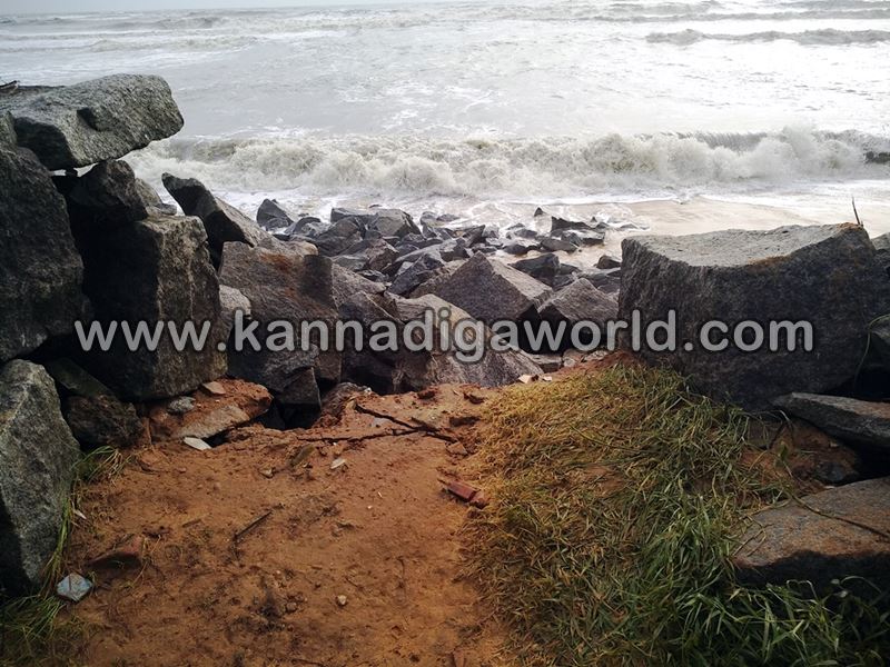 ಕಳೆದ ಮೂರು ದಿನದಿಂದ ಕೋಡಿ ಪರಿಸರದಲ್ಲಿ ಕಡಲ ಅಬ್ಬರ ಜಾಸ್ತಿಯಾಗಿತ್ತು. ಮಧ್ಯಾಹ್ನದ ಹೊತ್ತಿಗೆ ಅಲೆಗಳ ಉಕ್ಕಿ ಸಮುದ್ರ ತೀರದಲ್ಲಿ ಹಾಕಿದ ತಡೆ ಗೋಡೆ ದಾಟಿ ಮನೆ ಅಂಗಳಕ್ಕೆ ಅಪ್ಪಳಿಸಿದೆ. ತಡೆಗೋಡೆ ಕಲ್ಲು ಸಮುದ್ರಕ್ಕೆ ಜಾರಿಕೊಂಡಿದೆ. ಅಲೆ ರಭಸಕ್ಕೆ ತಡೆ ಗೋಡೆ ಕಲ್ಲಿನ ಸಂಧುಗಳಲ್ಲಿ ನೀರು ನುಗ್ಗಿ ಹತ್ತಾರು ಮಾರು ಡಾಮರ್ ರಸ್ತೆ ಒಳಭಾಗದಲ್ಲಿ ಟೊಳ್ಳು ಕೊರೆದಿದ್ದು, ರಸ್ತೆ ಕೂಡಾ ಅಪಾಯದಲ್ಲಿದೆ. ಒಂದು ಕಡೆ ಭೂಮಿ ಕೂಡಾ ಹೊಂಡ ಬಿದ್ದು, ತಡೆಗೋಡೆ ಕಲ್ಲು ಮಣ್ಣಲ್ಲಿ ಹೂತು ಹೋಗಿದೆ. ಎಂ.ಕೋಡಿಯಲ್ಲೂ ಅಲೆಗಳ ಅಬ್ಬರವಿದ್ದು, ತಡೆಗೋಡೆ ಒಂದು ಬದಿ ಸಮುದ್ರಕ್ಕೆ ಜಾರಿಕೊಂಡಿದೆ.