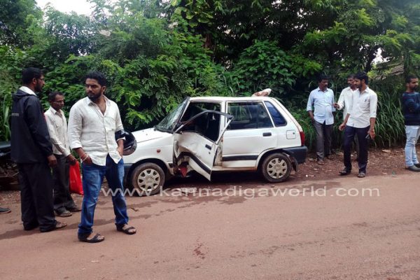 ಬೈಕೊಂದು ಕಾರಿಗೆ ಢಿಕ್ಕಿ ಹೊಡೆದು ಉಂಟಾದ ಅಪಘಾತದಲ್ಲಿ ಬೈಕ್ ಸವಾರ ಮೂಸಾ ಮುನೀಲ್ ಮತ್ತು ಕಾರಿನಲ್ಲಿದ್ದ ಮಹಿಳೆ ದಯಾ ರೇಖಾ (49) ಅವರು ಗಾಯಗೊಂಡಿದ್ದಾರೆ. ಕಾರು ಚಾಲಕ ಸುರೇಶ್ ಭಂಡಾರಿ ಅಪಾಯದಿಂದ ಪಾರಾಗಿದ್ದಾರೆ. ಮೂಸಾ ಉಳ್ಳಾಲದ ನಿವಾಸಿಗಿದ್ದು, ವಿದ್ಯಾರ್ಥಿ ಎನ್ನಲಾಗಿದೆ.