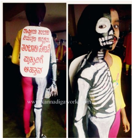 ಮಂಗಳೂರು ಜುಲೈ 31 : ತಂಬಾಕು ಸೇವನೆಯಿಂದ ತಮ್ಮ ಆರೋಗ್ಯವನ್ನು ತಾವೇ ಕೈಯಾರೆ ಹಾನಿ ಮಾಡುತ್ತಿರುವ ಜನರಿಗೆ ಸರಕಾರಿ ಹಿರಿಯ ಪ್ರಾಥಮಿಕ ಶಾಲೆ ನೇರಳಕಟ್ಟೆ, ಬಂಟ್ವಾಳ ತಾಲೂಕಿನ 5ನೇ ತರಗತಿಯಲ್ಲಿ ವ್ಯಾಸಾಂಗ ಮಾಡುತ್ತಿರುವ ನಿಭಾ ಶೆಟ್ಟಿ ಎಂಬ ಬಾಲಕಿ ಕ್ಲಸ್ಟರ್ ಮಟ್ಟದ ಪ್ರತಿಭಾ ಕಾರಂಜಿಯ ಛದ್ಮ ವೇಷ ಸ್ಪರ್ಧೆಯಲ್ಲಿ ಪ್ರಥಮ ಬಹುಮಾನ ಪಡೆದು ಎಲ್ಲರ ಗಮನ ಸೆಳೆಯುವ ಮೂಲಕ ತಂಬಾಕು ಸೇವನೆ ಮೃತ್ಯುಗೆ ಆಹ್ವಾನ ಎಂಬ ಸಂದೇಶವನ್ನು ಸಾರಿದ್ದಾರೆ.