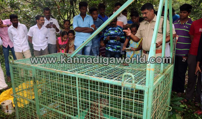 ಮಾಲಾಡಿಯ ತೋಟವೊಂದರಲ್ಲಿ ಕಳೆದೊಂದು ವಾರದ ಹಿಂದೆ ಚಿರತೆ ಪ್ರತ್ಯಕ್ಷವಾದ ಬೆನ್ನಲ್ಲೆ ಕಳೆದ ಗುರುವಾರ ಸಂಜೆ ಅರಣ್ಯ ಇಲಾಖೆಯು ಬೋನು ಇಟ್ಟು ಪಂಚಾಯತಿ ನೀಡಿದ ಆರೂವರೆ ಸಾವಿರ ಮೌಲ್ಯದ ಮೇಕೆಯನ್ನು ಬೋನಿನೊಳಗೆ ಕಟ್ಟಿದ್ದರು. ವಾರ ಕಳೆದರೂ ಚಿರತೆ ಮಾತ್ರ ಇತ್ತಕಡೆ ಸುಳಿದಿರಲಿಲ್ಲ. ಶುಕ್ರವಾರ ಸಂಜೆ ಮೇಕೆ ಬದಲಾಗಿ ನಾಯಿ ಮರಿಗಳನ್ನು ಬೋನಿನೊಳಕ್ಕೆ ಬಿಟ್ಟಿದ್ದು ಶನಿವಾರ ಬೆಳಿಗ್ಗೆ ನೋಡುವಾಗ ಚಿರತೆ ಬೋನಿನೊಳಕ್ಕೆ ಬಿದ್ದು ಬಂಧಿಯಾಗಿತ್ತು.