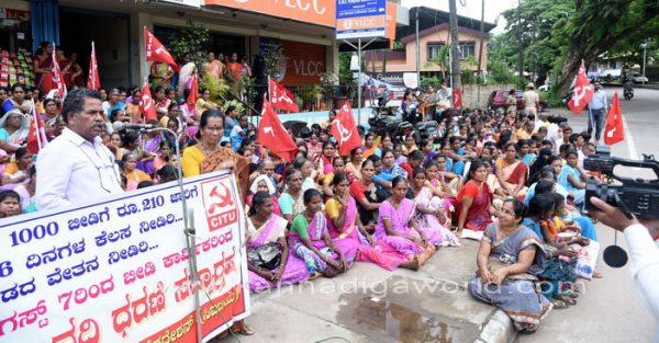 ಮಂಗಳೂರು, ಆಗಸ್ಟ್.08: ಬೀಡಿ ಕಾರ್ಮಿಕರ ವಿವಿಧ ಬೇಡಿಕೆಗಳಿಗೆ ಆಗ್ರಹಿಸಿ ಸೌತ್ ಕೆನರಾ ಬೀಡಿ ವರ್ಕರ್ಸ್ ಫೆಡರಡೇಶನ್ (ಸಿಐಟಿಯು) ನೇತೃತ್ವದಲ್ಲಿ ಬೀಡಿ ಕಾರ್ಮಿಕರು ಮಂಗಳವಾರ ಸಹಾಯಕ ಕಾರ್ಮಿಕ ಆಯುಕ್ತರ ಕಚೇರಿಯ ಮುಂದೆ ಆರಂಭಿಸಿರುವ ಅನಿರ್ದಿಷ್ಟಾವಧಿ ಧರಣಿ ಸತ್ಯಾಗ್ರಹವು ಬುಧವಾರ ಕೂಡ ಮುಂದುವರಿದಿದೆ.