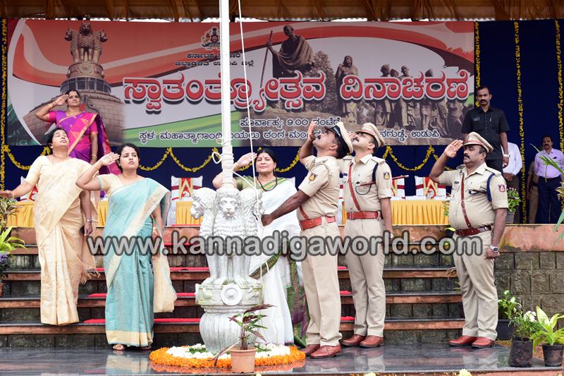 ಉಡುಪಿ: ಉಡುಪಿಯಲ್ಲಿ ಮಹಿಳಾ ಮತ್ತು ಮಕ್ಕಳ ಕಲ್ಯಾಣ ಸಚಿವೆಯೂ ಆದ ಜಿಲ್ಲಾ ಉಸ್ತುವಾರಿ ಮಂತ್ರಿ ಡಾ.ಜಯಮಾಲಾ ಸ್ವಾತಂತ್ರೋತ್ಸವ ಧ್ವಜಾರೋಹಣ ಮಾಡಿದರು.