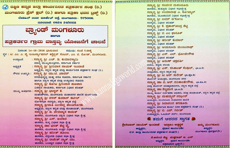 ಕಾರ್ಯಕ್ರಮದ ಅಧ್ಯಕ್ಷತೆಯನ್ನು ದಕ್ಷಿಣ ಕನ್ನಡ ಜಿಲ್ಲಾ ಕಾರ್ಯ ನಿರತ ಪತ್ರಕರ್ತರ ಸಂಘದ ಅಧ್ಯಕ್ಷ ಶ್ರೀನಿವಾಸ್ ನಾಯಕ್ ವಹಿಸಲಿದ್ದಾರೆ .