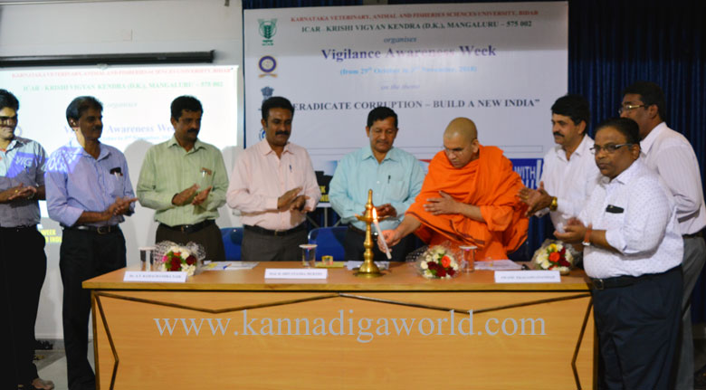 ಮಂಗಳೂರು: ದಕ್ಷಿಣ ಕನ್ನಡ ಜಿಲ್ಲೆಯ ಕೃಷಿ ವಿಜ್ಞಾನ ಕೇಂದ್ರವು ಬೀದರ್‍ನ ಕರ್ನಾಟಕ ಪಶುವೈದ್ಯಕೀಯ, ಪಶು ಹಾಗೂ ಮೀನುಗಾರಿಕೆ ವಿಜ್ಞಾನಗಳ ವಿಶ್ವವಿದ್ಯಾಲಯದ ಅಂಗ ಸಂಸ್ಥೆಯಾಗಿದ್ದು ಭಾರತೀಯ ಕೃಷಿ ಅನುಸಂಧಾನ ಪರಿಷತ್‍ನ ನಿರ್ದೇಶನದ ಮೇರೆಗೆ ‘ಭ್ರಷ್ಟಾಚಾರ ನಿರ್ಮೂಲನೆಯ ಮೂಲಕ ನವ್ಯ ಭಾರತ ನಿರ್ಮಾಣ’ ಎಂಬ ವಿಷಯದ ಬಗ್ಗೆ ಅರಿವು ಪರಿವೀಕ್ಷಣಾ ಕಾರ್ಯಕ್ರಮವನ್ನು ಹಮ್ಮಿಕೊಂಡಿತ್ತು.
