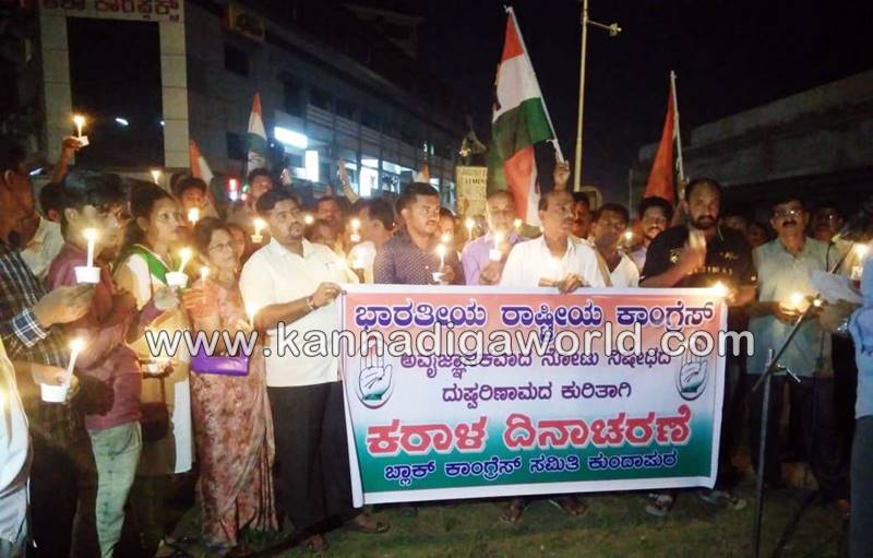 ಮೊಂಬತ್ತಿ ಬೆಳಗಿಸಿದ ಕಾರ್ಯಕರ್ತರು ನೋಟು ನಿಷೇಧ ಮಾಡಿದ ಪ್ರಧಾನಿ ನರೇಂದ್ರ ಮೋದಿ ನೇತೃತ್ವದ ಕೇಂದ್ರ ಸರ್ಕಾರದ ವಿರುದ್ದ ಮೌನ ಪ್ರತಿಭಟನೆ ನಡೆಸಿದರು.