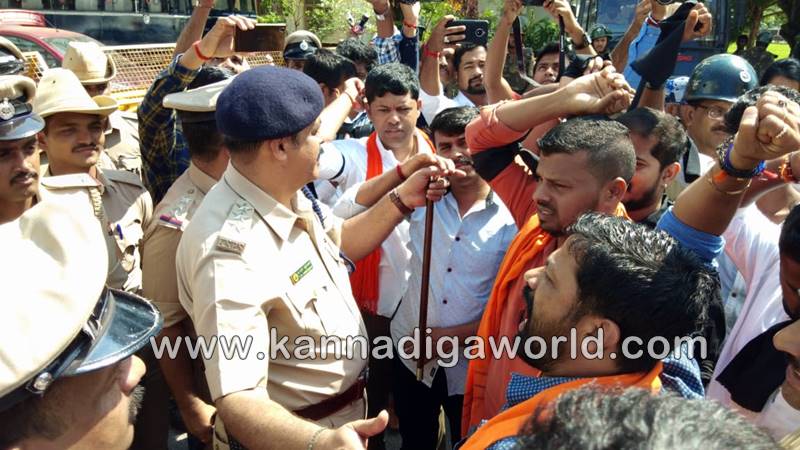 ಕರಾವಳಿಯಾದ್ಯಂತ ಬಿಜೆಪಿ ಹಾಗೂ ಹಿಂದೂ ಪರ ಸಂಘಟನೆಗಳು ಟಿಪ್ಪು ಜಯಂತಿಗೆ ತೀವ್ರ ವಿರೋದ ವ್ಯಕ್ತ ಪಡಿಸಿವೆ. ಆದ್ರೆ ಸರಕಾರ ಹಾಗೂ ಜಿಲ್ಲಾಡಳಿತ ವಿರೋಧದ ನಡುವೆಯೂ ಟಿಪ್ಪು ಜಯಂತಿ ಆಚರಣೆಗೆ ಮುಂದಾದ ಹಿನ್ನಲೆಯಲ್ಲಿ ಇಂದು ಹಿಂದೂ ಪರ ಸಂಘಟನೆಗಳು ಜಿಲ್ಲಾಡಳಿತಕ್ಕೆ ಮುತ್ತಿಗೆ ಹಾಕಲು ಮುಂದಾಗಿದ್ದಾರೆ. ಈ ವೇಳೆ ಪೋಲಿಸರು ಹಿಂದೂ ಪರ ಸಂಘಟನೆಯ ಕಾರ್ಯಕರ್ತರ ಯತ್ನವನ್ನು ವಿಫಲಗೊಳಿಸಿ ೨೦ ಕ್ಕೂ ಹೆಚ್ಚು ಕಾರ್ಯಕರ್ತರನ್ನು ಬಂಧಿಸಿದ್ದು ಮುಂಜಾಗ್ರತಾ ಕ್ರಮವಾಗಿ ಜಿಲ್ಲಾಡಳಿತದ ಬಳಿ ಬಿಗಿ ಪೋಲಿಸ್ ಬಂದೋಬಸ್ತ್ ಏರ್ಪಡಿಸಲಾಗಿತ್ತು.