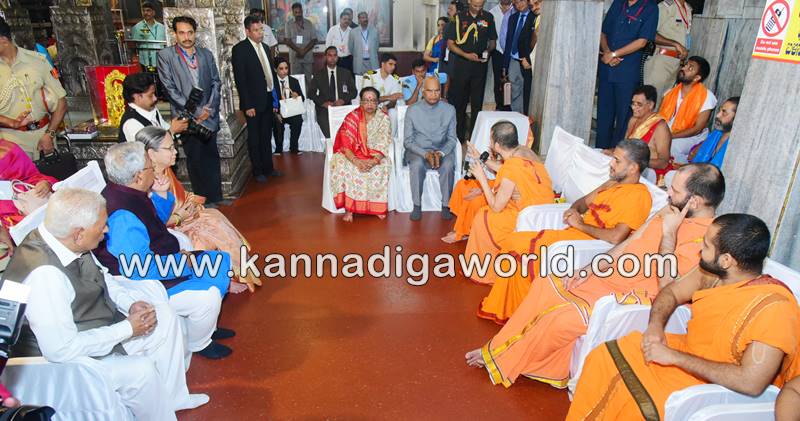 ಪೇಜಾವರ ಶ್ರೀ ವಿಶ್ವೇಶ್ವತೀರ್ಥ ಸ್ವಾಮೀಜಿ ಅವರು ಮಾತನಾಡಿ, ಮಧ್ವಾಚಾರ್ಯರು ಪ್ರತಿಷ್ಠಾಪಿಸಿದ ಉಡುಪಿ ಶ್ರೀ ಕೃಷ್ಣ ಮಠಕ್ಕೆ ರಾಷ್ಟ್ರಪತಿಗಳ ಆಗಮನವು ಸಂತೋಷ ನೀಡಿದೆ ಎಂದರು. ಪರ್ಯಾಯ ಶ್ರೀ ವಿದ್ಯಾಧೀಶತೀರ್ಥ ಸ್ವಾಮೀಜಿಗಳು ರಾಷ್ಟ್ರಪತಿಗಳನ್ನು ಸ್ವಾಗತಿಸಿದರು.