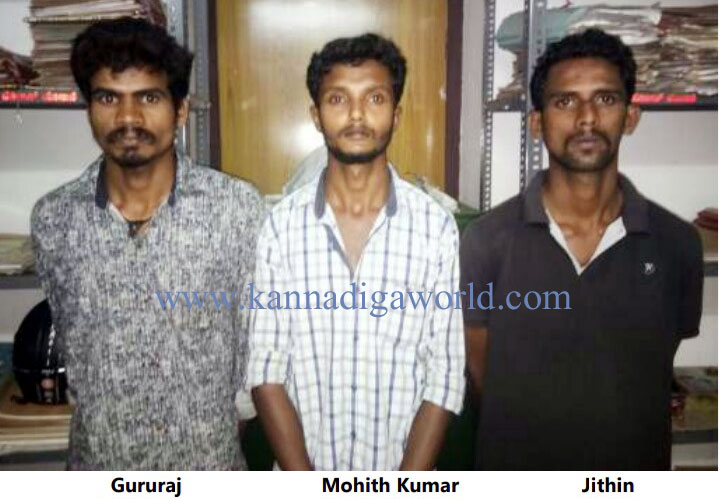 ಬಂಧಿತ ಆರೋಪಿಗಳನ್ನು ಪದವು ಕಕ್ಕೆಬೆಟ್ಟು ನಿವಾಸಿ ಜಿತಿನ್ (25), ನೀರುಮಾರ್ಗ ಪ್ರಕೃತಿ ಲೇಔಟ್ ನಿವಾಸಿ ಮೋಹಿತ್ ಕುಮಾರ್ (27 ಹಾಗೂ ಮೂಡುಶೆಡ್ಡೆ ಶಿವನಗರ ನಿವಾಸಿ ಗುರುರಾಜ್ (25) ಎಂದು ಗುರುತಿಸಲಾಗಿದೆ.