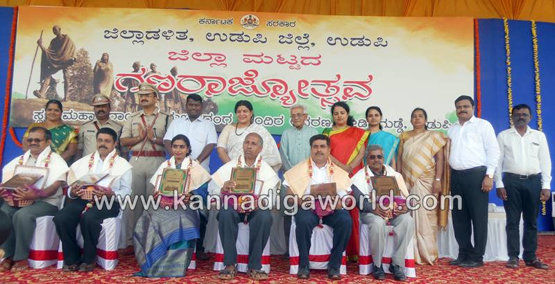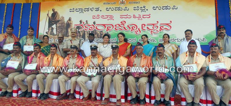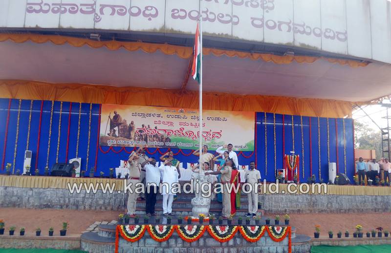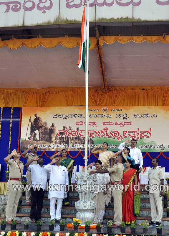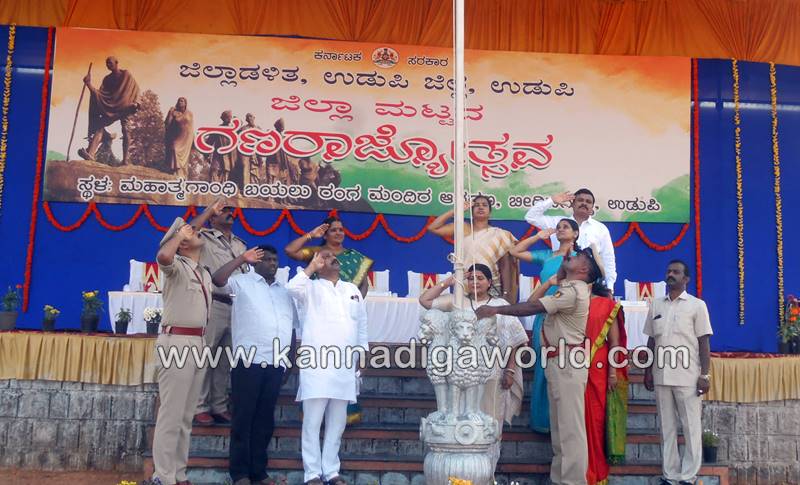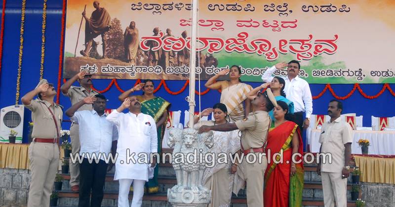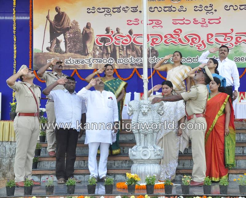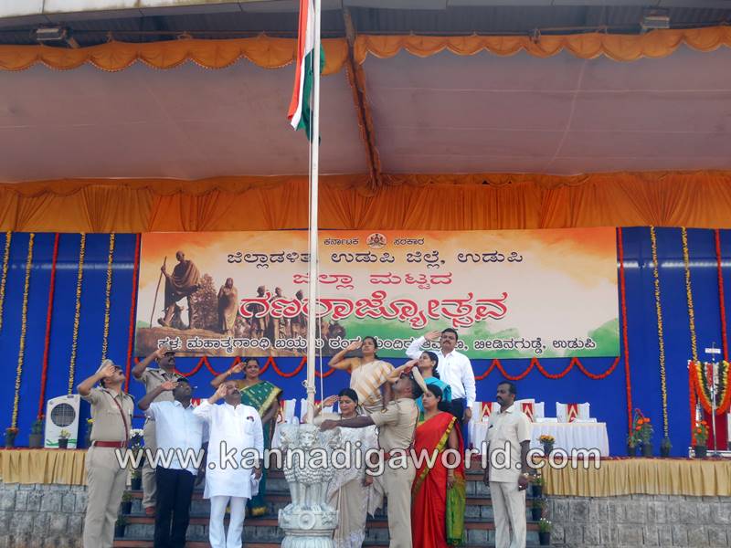 ಉಡುಪಿ: ಉಡುಪಿಯ ಬೀಡಿನಗುಡ್ಡೆಯ ಮಹಾತ್ಮ ಗಾಂಧೀ ಬಯಲು ರಂಗ ಮಂದಿರದಲ್ಲಿ ಶನಿವಾರ ನಡೆದ ಗಣರಾಜ್ಯೋತ್ಸವ ದಿನಾಚರಣೆಯಲ್ಲಿ ರಾಜ್ಯ ಮಹಿಳಾ ಮತ್ತು ಮಕ್ಕಳ ಅಭಿವೃದ್ಧಿ, ವಿಕಲಚೇತನರ ಹಾಗೂ ಹಿರಿಯ ನಾಗರಿಕರ ಸಬಲೀಕರಣ ಸಚಿವೆ ಹಾಗೂ ಜಿಲ್ಲಾ ಉಸ್ತುವಾರಿ ಸಚಿವೆ ಡಾ. ಜಯಮಾಲಾ ಧ್ವಜಾರೋಹಣ ನೆರವೇರಿಸಿ, ಗಣರಾಜ್ಯೋಥ್ಸವದ ಸಂದೇಶ ನೀಡಿದರು.
