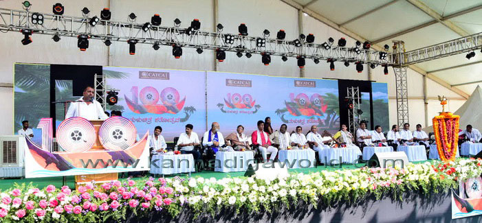 ಮಂಗಳೂರು, ಜನವರಿ,27: ಕೋಸ್ಟಲ್ವುಡ್ ಕಲಾವಿದರ ಮತ್ತು ತಂತ್ರಜ್ಞರ ಒಕ್ಕೂಟದ ಆಶ್ರಯದಲ್ಲಿ ಮಂಗಳೂರಿನ ಕೇಂದ್ರ ಮೈದಾನದಲ್ಲಿ ಹಮ್ಮಿಕೊಳ್ಳಲಾದ “ತುಳು ಚಿತ್ರ ಶತೋತ್ಸವ” ಕಾರ್ಯಕ್ರಮಕ್ಕೆ ರವಿವಾರ ಬೆಳಗ್ಗೆ ಕರಾವಳಿ ಶಿಕ್ಷಣ ಸಂಸ್ಥೆಯ ಅಧ್ಯಕ್ಷ ಎಸ್.ಗಣೇಶ್ ರಾವ್ ಚಾಲನೆ ನೀಡಿದರು.