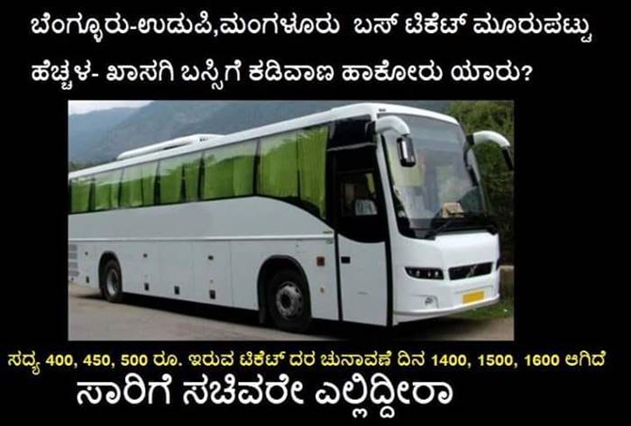 ಪ್ರತಿ ಬಾರಿ ಪ್ರಮುಖ ಹಬ್ಬಗಳು, ಸೀಸನ್ ಸಮಯಗಳಲ್ಲಿ ಬಸ್ ದರ ಏಕಾಏಕಿ ದುಪ್ಪಟ್ಟಾಗುವುದು ಮತ್ತು ಹೆಚ್ಚಳವಾಗುವುದು ಮಾಮೂಲಿಯಾಗಿತ್ತು. ಈ ಬಗ್ಗೆ ಹೇಳೋರು ಕೇಳೋರು ಇಲ್ಲವೆಂಬಷ್ಟರ ಮಟ್ಟಿಗೆ ಖಾಸಗಿ ಬಸ್ ಕಂಪೆನಿಗಳು ತಮಗೆ ಬೇಕಾದಂತೆ ದರ ಏರಿಕೆ ಮಾಡುತ್ತಿದ್ದರು. ಈ ಬಾರಿ ಲೋಕಸಭಾ ಚುನಾವಣಾ ದಿನಾಂಕ ಘೋಷಣೆಯಾಗುತ್ತಿದ್ದಂತೆಯೇ ಪ್ರಧಾನಿ ಮೋದಿಯವರು ಇದನ್ನು ಒಂದು ಹಬ್ಬವಾಗಿ ಆಚರಿಸಿ ಎಂದು ದೇಶವಾಸಿಗಳಿಗೆ ಕರೆಕೊಟ್ಟಿದ್ದರು. ಆದರೆ ಈ ಚುನಾವಣ ಹಬ್ಬವನ್ನು ಬಸ್ ಕಂಪೆನಿಯವರು ಏನು ತಿಳಿದರೋ ಗೊತ್ತಿಲ್ಲ. ಚುನಾವಣಾ ದಿನಾಂಕದ ಸಮಯದಲ್ಲಿ ಎರಡು ಮೂರು ಪಟ್ಟು ದರ ಏರಿಕೆ ಮಾಡಿದ್ದು ಜನರ ಆಕ್ರೋಶಕ್ಕೆ ಕಾರಣವಾಗಿದೆ.