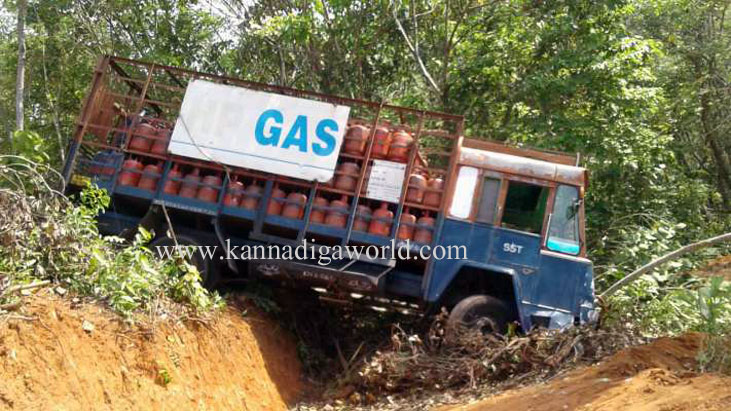 ಕಂದಕಕ್ಕೆ ಬಿದ್ದ ಗ್ಯಾಸ್ ಸಿಲಿಂಡರ್‌ ತುಂಬಿದ ಲಾರಿ : ಸ್ಥಳೀಯರಲ್ಲಿ ಆತಂಕ