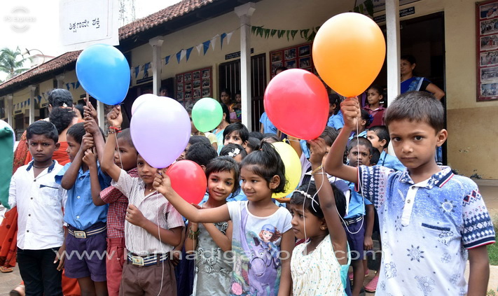 ಮಣ್ಣಗುಡ್ಡೆಯ ಹಿರಿಯ ಪ್ರಾಥಮಿಕ ಶಾಲೆಯಲ್ಲಿ ನೂತನವಾಗಿ ಒಂದನೇ ತರಗತಿಗೆ ಸೇರಿದ ಮಕ್ಕಳಿಗೆ ಬಲೂನ್ ಕೊಟ್ಟು ಸ್ವಾಗತಿಸಿದ ಶಾಲೆಯ ಹಿರಿಯ ವಿದ್ಯಾರ್ಥಿಗಳು ವಾದ್ಯಘೋಷದೊಂದಿಗೆ ಮೆರವಣಿಗೆಯನ್ನು ನಡೆಸಿದರು.