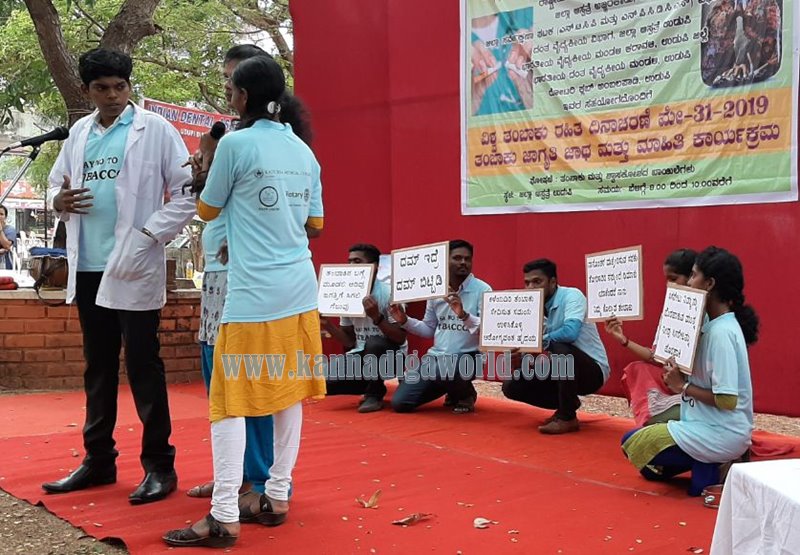 ವಿಶ್ವ ತಂಬಾಕು ರಹಿತ ದಿನಾಚರಣೆಯ ಅಂಗವಾಗಿ ಉಡುಪಿ ಬೋರ್ಡ್ ಹೈಸ್ಕೂಲ್ನಿಂದ ಜಿಲ್ಲಾಸ್ಪತ್ರೆಯವರೆಗೆ ತಂಬಾಕು ಮತ್ತು ಶ್ವಾಸಕೋಶದ ಖಾಯಿಲೆಗಳು ಎಂಬ ಘೋಷವಾಕ್ಯದೊಂದಿಗೆ ನಡೆದ ಜಾಥಕ್ಕೆ ಜಿಲ್ಲಾ ಮಲೇರಿಯಾ ಅಧಿಕಾರಿ ಡಾ.ಪ್ರಶಾಂತ್ ಭಟ್ ಚಾಲನೆ ನೀಡಿದರು. ಉಡುಪಿ ತಾಲೂಕು ಆರೋಗ್ಯಾಧಿಕಾರಿ(ಪ್ರಭಾರ) ಡಾ.ಸುರೇಶ್ ನಾಯಕ್ ಕಾರ್ಯಕ್ರಮವನ್ನು ಉದ್ಘಾಟಿಸಿದರು. ಭಾರತೀಯ ವೈದ್ಯಕೀಯ ಮಂಡಳಿ ಸದಸ್ಯ ಶಶಿಕುಮಾರ್ ಉಪಸ್ಥಿತರಿದ್ದರು. ಆಪ್ತ ಸಮಾಲೋಚಕಿ ಕೃತಿ ಸ್ವಾಗತಿಸಿದರು. ಮನು ಕಾರ್ಯಕ್ರಮ ನಿರೂಪಿಸಿ ವಂದನಾರ್ಪಣೆ ಮಾಡಿದರು.