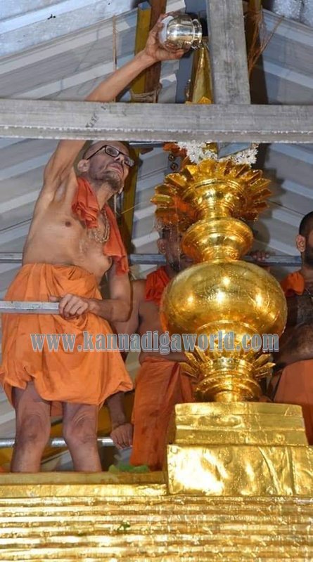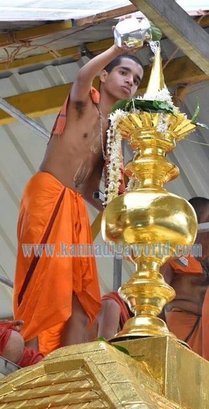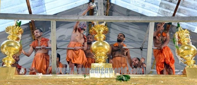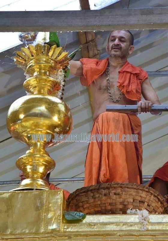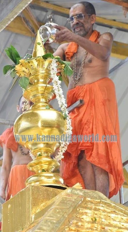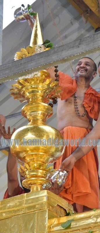 ಉಡುಪಿ ಕೃಷ್ಣಮಠದ ಪಾಲಿಗೆ ಗುರುವಾರ ನಿಜಕ್ಕೂ ಐತಿಹಾಸಿಕ ದಿನ. ಅಂದಾಜು 40 ಕೋಟಿ ವೆಚ್ಚದಲ್ಲಿ ನೂರು ಕೆ.ಜಿಗೂ ಅಧಿಕ ತೂಕದ ಚಿನ್ನವನ್ನು ಬಳಸಿ ಕೃಷ್ಣ ದೇವರ ಗರ್ಭಗುಡಿಗೆ ಸುವರ್ಣಗೋಪುರವನ್ನು ಸಮರ್ಪಿಸಲಾಯಿತು. ಗರ್ಭಗುಡಿಯ ಮುಡಿಗೇರಿದ ಮೂರು ಕಲಶಗಳಿಗೆ ವೈಭವದ ಅಲಂಕಾರ ಮಾಡಲಾಗಿದ್ದು ಅಷ್ಟಮಠಾಧೀಶರಿಂದ ನಿರಂತರ ನಾಲ್ಕು ಗಂಟೆಗಳ ಕಾಲ ಅಭಿಷೇಕ ನಡೆದಿದ್ದು ಈ ಕ್ಷಣವನ್ನು ಕಣ್ತುಂಬಿಕೊಳ್ಳಲು ಸಹಸ್ರರಾರು ಭಕ್ತರು ಆಗಮಿಸಿದ್ದರು.