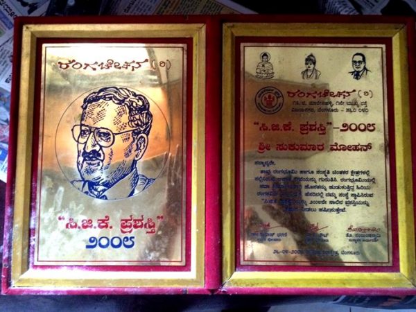 * 2008 ರಂಗಚೇತನ ಬೆಂಗಳೂರು ಇವರಿಂದ”ಸಿ.ಜಿ.ಕೆ” ಪ್ರಶಸಿ.