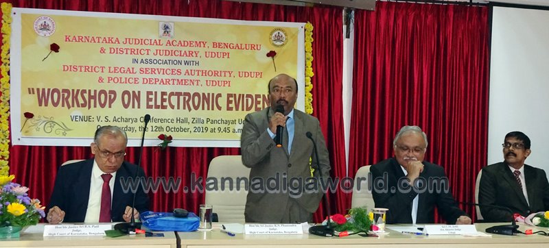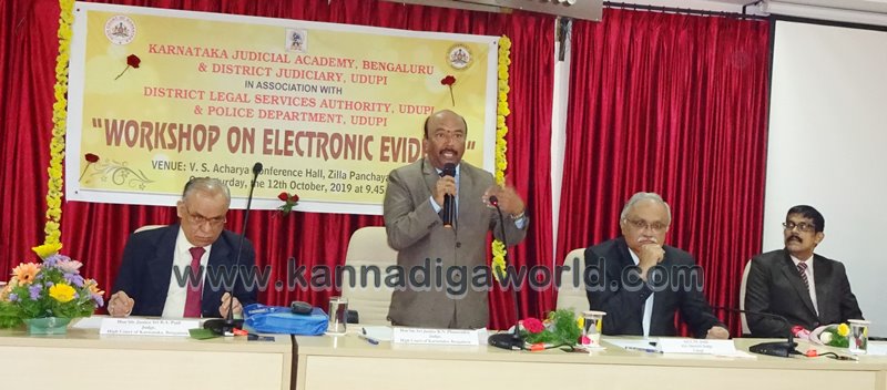 ಉಡುಪಿ: ಇಂದಿನ ಆಧುನಿಕ ಜಗತ್ತಿನಲ್ಲಿ ನಡೆಯುತ್ತಿರುವ ಡಿಜಿಟಲ್ ಅಪರಾಧಗಳು ಮತ್ತು ಅವುಗಳ ತನಿಖಾ ವಿಧಾನ ಮತ್ತು ಸಾಕ್ಷ್ಯ ಸಂಗ್ರಹದ ಬಗ್ಗೆ ಪೊಲೀಸ್ ಇಲಾಖೆ ಮತ್ತು ನ್ಯಾಯಾಂಗ ಇಲಾಖೆಯ ಎಲ್ಲಾ ಅಧಿಕಾರಿ ಮತ್ತು ಸಿಬ್ಬಂದಿಗಳು ಸೂಕ್ತ ಅರಿವು ಹೊಂದಿರಬೇಕು ಎಂದು ರಾಜ್ಯ ಹೈಕೋರ್ಟ್ ನ ನ್ಯಾಯಾಧೀಶ ಹಾಗೂ ಕರ್ನಾಟಕ ನ್ಯಾಯಾಂಗ ಅಕಾಡೆಮಿಯ ಗವರ್ನರ್ ನ್ಯಾ. ಕೆ.ಎನ್. ಫಣೀಂದ್ರ ಹೇಳಿದ್ದಾರೆ. ಅವರು ಶನಿವಾರ, ರಜತಾದ್ರಿಯ ಜಿಲ್ಲಾ ಪಂಚಾಯತ್ ಸಭಾಂಗಣದಲ್ಲಿ, ಕರ್ನಾಟಕ ನ್ಯಾಯಂಗ ಅಕಾಡೆಮಿ ಬೆಂಗಳೂರು, ಉಡುಪಿ ಜಿಲ್ಲಾ ನ್ಯಾಯಾಲಯ ಹಾಗೂ ಉಡುಪಿ ಜಿಲ್ಲಾ ಕಾನೂನು ಸೇವೆಗಳ ಪ್ರಾಧಿಕಾರ ಮತ್ತು ಪೊಲೀಸ್ ಇಲಾಖೆ ಸಹಯೋಗದಲ್ಲಿ , ಜಿಲ್ಲೆಯ ನ್ಯಾಯಾಂಗ ಇಲಾಖೆಯ ಅಧಿಕಾರಿಗಳು, ಪೊಲೀಸ್ ಅಧಿಕಾರಿಗಳು , ವಕೀಲರು ಮತ್ತು ನ್ಯಾಯಾಂಗ ಇಲಾಖೆಯ ಸಿಬ್ಬಂದಿಗಳಿಗೆ ನಡೆದ ಎಲೆಕ್ಟ್ರಾನಿಕ್ಸ್ ಪುರಾವೆ ಕುರಿತ ಕಾರ್ಯಾಗಾರ ಉದ್ಘಾಟಿಸಿ ಮಾತನಾಡಿದರು.