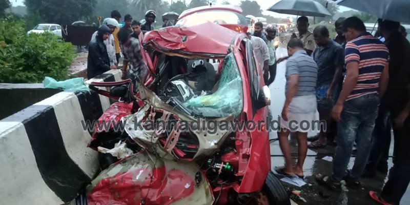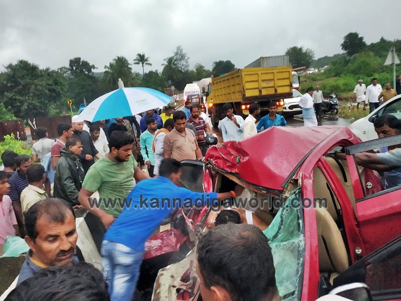 ಭಟ್ಕಳದಿಂದ ಉಡುಪಿ ಕಡೆ ಸಾಗುತ್ತಿದ್ದ ಕಾರು ಹಾಗೂ ಮಂಗಳೂರಿನಿಂದ ಕಾರವಾರದ ಕಡೆಗೆ ತೆರಳುತ್ತಿದ್ದ ಲಾರಿಯ ನಡುವೆ ಮುಖಾಮುಖಿ ಡಿಕ್ಕಿಯಾಗಿದೆ. ಡಿಕ್ಕಿಯಾದ ರಭಸಕ್ಕೆ ಕಾರು ಚಾಲಕ ಸ್ಥಳದಲ್ಲೆ ಸಾವನ್ನಪ್ಪಿದ್ದಾನೆ. ಕಾರಿನ ಮುಂಭಾಗ ಸಂಪೂರ್ಣ ನುಜ್ಜುನುಜ್ಜಾಗಿದೆ. ಕಾರಿನಲ್ಲಿ ಇರ್ವರು ಪ್ರಯಾಣಿಸುತ್ತಿದ್ದು ಇನ್ನೊರ್ವ ಸವಾರ ಗಂಭೀರ ಗಾಯಗೊಂಡು ಆಸ್ಪತ್ರೆಗೆ ದಾಖಲಿಸಿದ್ದಾರೆ. ಕಾರಿನಲ್ಲಿದ್ದವರು ಉಡುಪಿ ಕುಂದಾಪುರದ ಮೂಲದವರೆಂದು ಗುರುತಿಸಲಾಗಿದ್ದು ವಂಡ್ಸೆಯ ನಿತೇಶ್ (23) ಸಾವನ್ನಪ್ಪಿದ್ದಾರೆ.