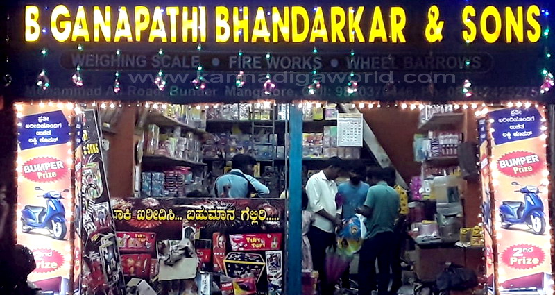 ಮಂಗಳೂರು, ಆಕ್ಟೋಬರ್.27 : ನಗರದ ಬಂದರ್ನ ಗೋಳಿಕಟ್ಟಾ ಬಜಾರ್, ಜೆ.ಎಂ.ರಸ್ತೆಯಲ್ಲಿರುವ ಗಣಪತಿ ಭಂಡಾರ್ಕರ್ ಆಂಡ್ ಸನ್ಸ್ ಮಳಿಗೆಯಲ್ಲಿ ಪ್ರತಿವರ್ಷ ನಡೆಯುವ ದೀಪಾವಳಿ ಉತ್ಸವದ ವಿಶೇಷ ಮಾರಾಟ ಆರಂಭಗೊಂಡಿದೆ.ಪಟಾಕಿ ಖರೀದಿಸಿರಿ, ಬಹುಮಾನ ಗೆಲ್ಲಿರಿ ವಿಶೇಷ ಕೊಡುಗೆಯೊಂದಿಗೆ ಇಲ್ಲಿ ಬೆಳಕಿನ ಹಬ್ಬಕ್ಕೆ ಚಾಲನೆ ಸಿಕ್ಕಿದೆ.