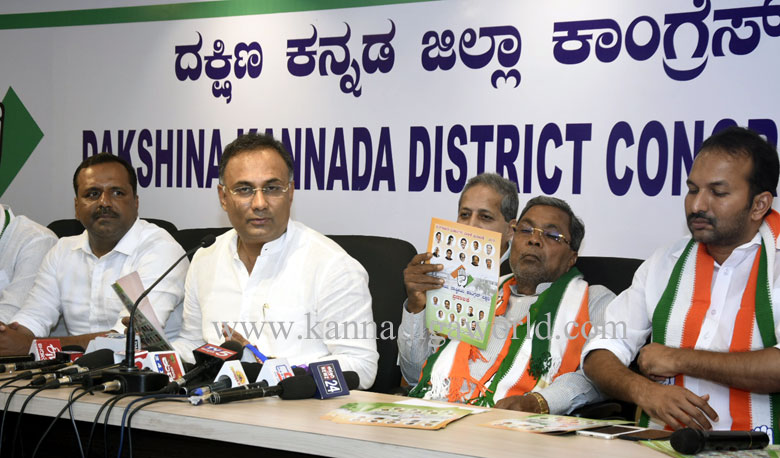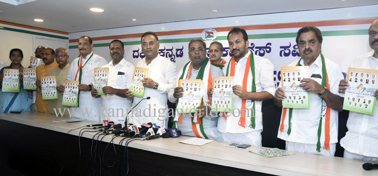 ಮಂಗಳೂರು : ಮಂಗಳೂರು ಮಹಾನಗರ ಪಾಲಿಕೆಗೆ ನ.12ರಂದು ನಡೆಯುವ ಚುನಾವಣೆಗೆ ಸಂಬಂಧಿಸಿದಂತೆ ಮಾಜಿ ಮುಖ್ಯಮಂತ್ರಿ ಹಾಗೂ ವಿಪಕ್ಷ ನಾಯಕ ಸಿದ್ದರಾಮಯ್ಯ ಹಾಗೂ ಕೆಪಿಸಿಸಿ ಅಧ್ಯಕ್ಷ ದಿನೇಶ್ ಗುಂಡೂರಾವ್ ಅವರು ಬುಧವಾರ ದ.ಕ. ಜಿಲ್ಲಾ ಕಚೇರಿಯಲ್ಲಿ ಪಕ್ಷದ ಪ್ರಣಾಳಿಕೆಯನ್ನು ಬಿಡುಗಡೆಗೊಳಿಸಿದರು.