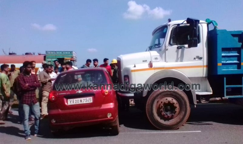 ಕುಂಭಾಸಿ ಕಡೆಯಿಂದ ಬರುತ್ತಿದ್ದ ಕಾರು ಹೆದ್ದಾರಿ ಮಧ್ಯದಲ್ಲಿ ಬರುತ್ತಿದ್ದಂತೆ ಚಾಲಕನ ನಿಯಂತ್ರಣ ತಪ್ಪಿ ಡಿವೈಡರ್ಗೆ ಡಿಕ್ಕಿ ಹೊಡೆದು ರಸ್ತೆಗೆ ಅಡ್ಡವಾಗಿ ನಿಂತಿದ್ದು ಇದೇ ಸಂದರ್ಭ ಹಿಂಬದಿಯಿಂದ ಬಂದ ಟಿಪ್ಪರ್ ಕಾರಿಗೆ ಡಿಕ್ಕಿ ಹೊಡೆದಿದೆ. ಎನ್ನಲಾಗಿದೆ. ಅದ್ರಷ್ಟವಶಾತ್ ಅವಘಡದಲ್ಲಿ ಚಾಲಕರು ಪಾರಾಗಿದ್ದಾರೆ.