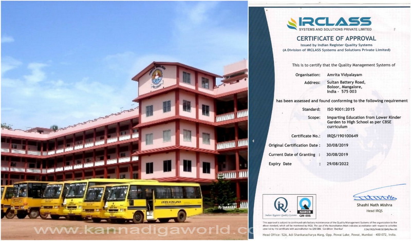 ಮಂಗಳೂರು: ಅಮೃತ ವಿದ್ಯಾಲಯಂ ಸುಲ್ತಾನ್ ಬತ್ತೆರಿ ಬೋಳೂರು ಮಂಗಳೂರು ಇದು ಐ.ಎಸ್.ಒ 9001-2015 ರೊಂದಿಗೆ ಸಮಾಲೋಚಿಸಲಾಗಿದೆ ಎಂದು ಘೋಷಿಸಲು ನಾವು ಹೆಮ್ಮೆ ಪಡುತ್ತೇವೆ ಎಂದು ಸಂಸ್ಥೆಯ ಮುಖ್ಯಸ್ಥರು ತಿಳಿಸಿದ್ದಾರೆ.