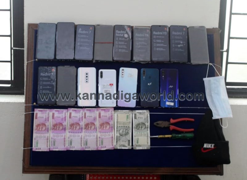 ನವೆಂಬರ್ 5 ರಂದು ರಾತ್ರಿ ಉಡುಪಿ ನಗರದ ತ್ರೀವೇಣಿ ಜಂಕ್ಷನ್ ಬಳಿ ಇರುವ ಪ್ಲೇ ಜೋನ್ ಎಂಬ ಮೊಬೈಲ್ ಅಂಗಡಿಯಿಂದ ಸುಮಾರು ರೂ. 8,34,990/- ಬೆಲೆಬಾಳುವ ಮೊಬೈಲ್ ಪೋನ್ಗಳು ಹಾಗೂ ನಗದು ಕಳವಾಗಿದ್ದು ಆರೋಪಿಗಳನ್ನು ಡಿಸೆಂಬರ್ 1ರಂದು ಬಂಧಿಸಿದ್ದು ಬಂಧಿತರಿಂದ ಅಂದಾಜು ರೂ. 3 ಲಕ್ಷ ಮೌಲ್ಯದ 16 ಮೊಬೈಲ್, 22 ಸಾವಿರ ನಗದು, ಹಾಗೂ ಕಳವಿಗೆ ಉಯೋಗಿಸಿದ ಒಂದು ಕಬ್ಬಿಣದ ಸ್ಕ್ರೂ ಡ್ರೈವರ್, ಒಂದು ಕಟ್ಟಿಂಗ್ ಪ್ಲೇರ್, ಬೆನ್ನಿಗೆ ಹಾಕುವ ಎರಡು ಬ್ಯಾಗ್, ಮೂಗಿಗೆ ಕಟ್ಟುವ ಒಂದು ಮಾಸ್ಕ್, ತಲೆಗೆ ಹಾಕುವ ಬಟ್ಟೆಯ ಕ್ಯಾಪ್ ಗಳನ್ನು ವಶಪಡಿಸಿಕೊಳ್ಳಲಾಗಿದೆ.