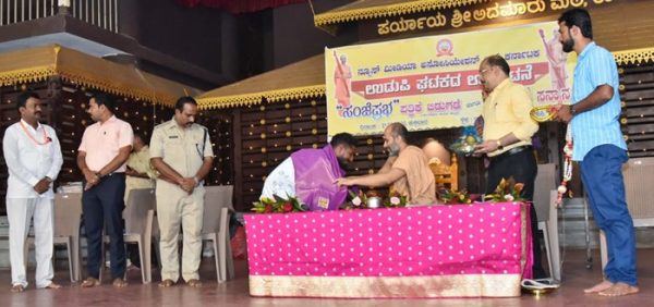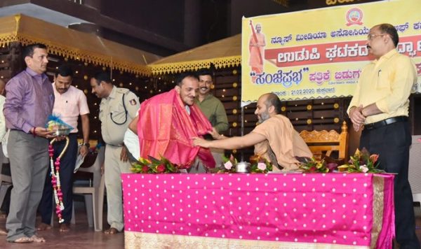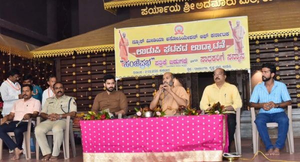 ಉಡುಪಿಯ ಶ್ರೀ ಕೃಷ್ಣ ಮಠದ ರಾಜಾಂಗಣದಲ್ಲಿ ನಡೆದ ನ್ಯೂಸ್ ಮಿಡಿಯಾ ಅಸೋಸಿಯೇಷನ್ ಅಫ್ ಕರ್ನಾಟಕ ಇದರ ಉಡುಪಿ ಜಿಲ್ಲಾ ಘಟಕದ ಉದ್ಘಾಟನೆ ಹಾಗೂ ಸಂಜೆ ಪ್ರಭ ಪತ್ರಿಕೆ ಬಿಡುಗಡೆಗೊಳಿಸಿ ಮಾತನಾಡಿದ ಶ್ರೀಗಳು, ನಾವು ಸಾಧನೆಗಳನ್ನು ಮಾಡಬೇಕಾದ್ರೆ ಮೊದಲು ಸಮಾಧಾನದಲ್ಲಿರುವುದಕ್ಕೆ ಅಭ್ಯಸ ಮಾಡಬೇಕು,ಗುರಿಯನ್ನ ತಲುಪಬೇಕಾದರೆ ಏಕರೂಪಿ ಪ್ರಯತ್ನಗಳನ್ನು ಮಾಡಬೇಕಾಗುತ್ತದೆ.ಒಳ್ಳೆಯ ಕೆಲಸಗಳನ್ನು ಮಾಡುವಾಗ ಹಲವು ಬಾರಿ ಅವಮಾನಗಳನ್ನು ಎದುರಿಸಬೇಕಾಗುತ್ತದೆ,ಅದ್ರೆ ಸಮಾಜಕ್ಕೆ ಒಳ್ಳೆಯ ಕೆಲಸಗಳನ್ನು ಮಾಡುವಾಗ ಪ್ರಯತ್ನದಿಂದ ವಿಮುಖರಾಗದೇ ಮುಂದುವರೆಸಬೇಕು ಎಂದು ಹೇಳಿದರು .