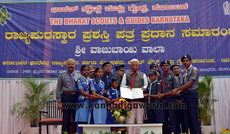 ಉಡುಪಿ: 2019-20 ನೇ ಸಾಲಿನ ರಾಜ್ಯ ಮಟ್ಟದ ಪ್ರಶಸ್ತಿ ಪತ್ರ ಸಮಾರಂಭದಲ್ಲಿ ಉಡುಪಿ ಜಿಲ್ಲೆಯ ಕಬ್ಸ್-ಬುಲ್ ಬುಲ್, ಸ್ಕೌಟ್ಸ್-ಗೈಡ್ಸ್ ಮತ್ತು ರೋವರ್ಸ್ ರೇಂಜರ್ಸ್ ಸಾಧಕರಿಗೆ, ರಾಜ್ಯಪಾಲ ವಾಜುಬಾಯಿ ರೂಡಬಾಯಿ ವಾಲಾ ರವರು, ಬೆಂಗಳೂರಿನ ರಾಜಭವನದ ಗಾಜಿನ ಮನೆಯಲ್ಲಿ ಪ್ರಶಸ್ತಿ ಪತ್ರ ನೀಡಿ ಅಭಿನಂದಿಸಿದರು.