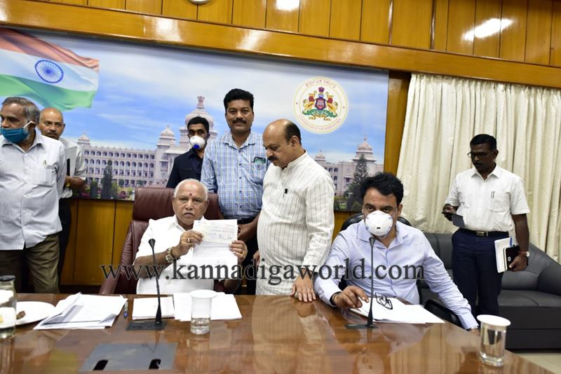 ಉಡುಪಿ: ರಾಜ್ಯದ ಗೃಹ ಸಚಿವರು ಹಾಗೂ ಉಡುಪಿ ಜಿಲ್ಲಾ ಉಸ್ತುವಾರಿ ಸಚಿವ ಬಸವರಾಜ ಬೊಮ್ಮಾಯಿ ಅವರು ಮುಖ್ಯಮಂತ್ರಿಗಳ ಪರಿಹಾರ ನಿಧಿ ಕೋವಿಡ್-19 ಗೆ , ಉಡುಪಿ ನಿರ್ಮಿತಿ ಕೇಂದ್ರದ ವತಿಯಿಂದ 1 ಕೋಟಿ ರೂ ಮೊತ್ತದ ಚೆಕ್ ನ್ನು ಮುಖ್ಯಮಂತ್ರಿಗಳಿಗೆ ಬೆಂಗಳೂರಿನ ಕಚೇರಿಯಲ್ಲಿ ಹಸ್ತಾಂತರಿಸಿದರು.
